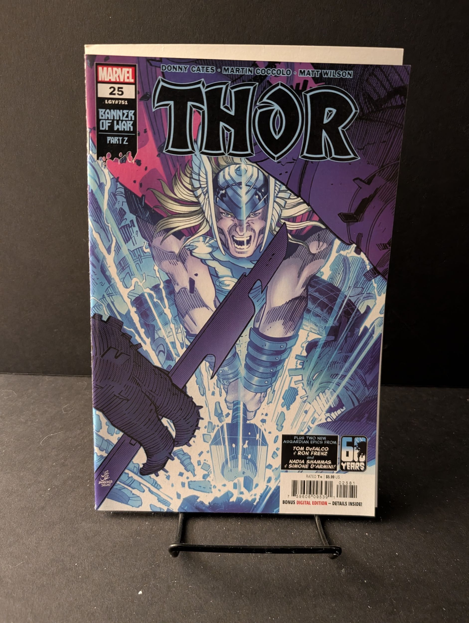 Written by Donny Cates and Marvel Various. Art by Martin Coccolo and Marvel Various. Cover by John Romita Jr. "BANNER OF WAR" PART TWO! The 60th Anniversary celebration - and Thor and Hulk's epic rivalry - continues in the second installment of the crossover between the HULK and THOR series! Banner's newfound control of his rage is prolonging this fight more than Thor expected, and with Banner holding his own, Thor must get creative. Odin's breakthrough look into Banner's psyche seems to slow the violence, but will it be enough? Additionally, new creators to the THOR title bring glimpses into the possible futures of Thor and his friends! 52 pages, full color. Rated T+ Cover price $5.99.Seller Information