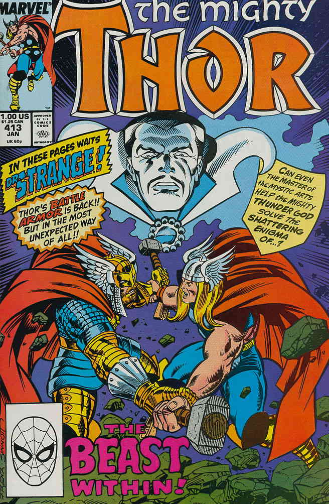 Item: Thor #413 | Publisher: Marvel | Cover Date: January 1990 | Writer: Tom DeFalco, Ron Frenz | Artist: Ron Frenz, Ron Lim | Cover Artist: Ron Frenz | Appearances: Dr. Strange, Ulik, Loki, Thor (Beta Ray Bill) | S ... Read More
