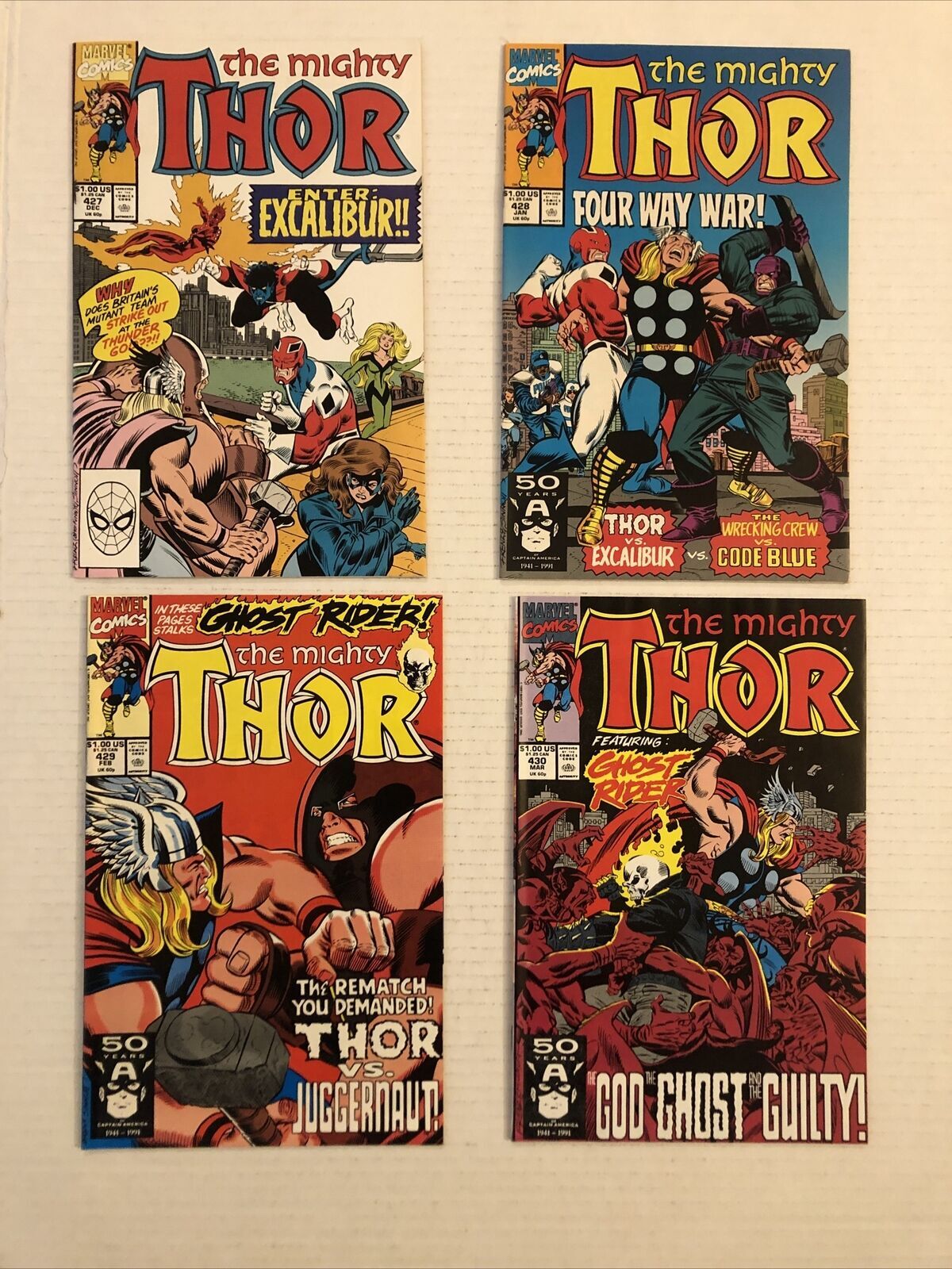 Thor #423 - 430 Condition- spine wear soiling creasesComics in our lots are bagged together with one board not individually