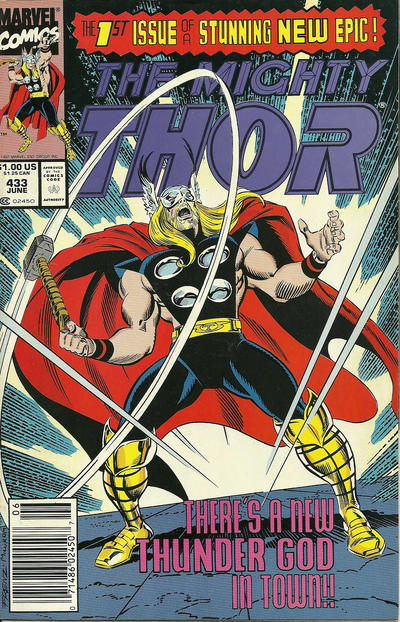 Item: Thor #433 (Newsstand) | Publisher: Marvel | Cover Date: June 1991 | Writer: Tom DeFalco, Ron Frenz | Artist: Ron Frenz | Cover Artist: Ron Frenz | Appearances: Ulik, Code: Blue | Storylines: Whosoever Holds Th ... Read More