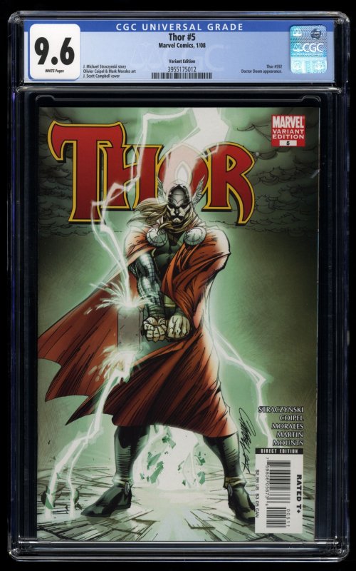 Thor #5 CGC NM+ 9.6 White Pages J. Scott Campbell Variant 1st Lady Loki!