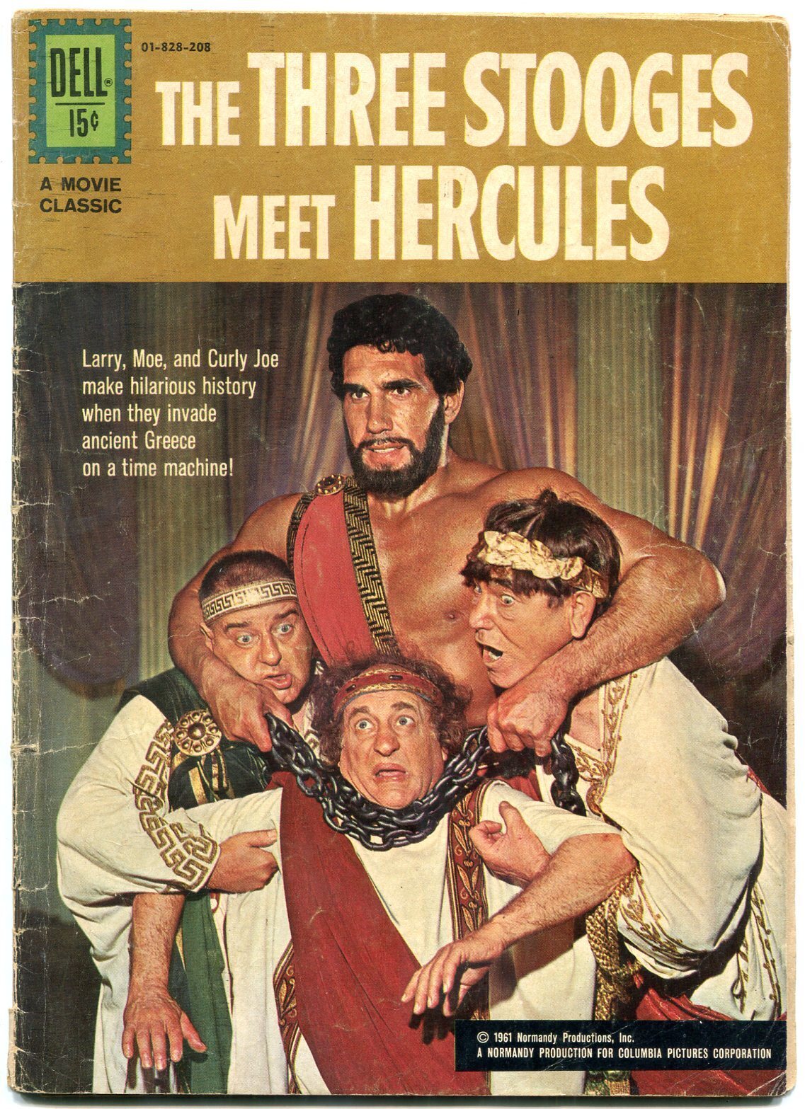 Grade: VG Three Stooges Meet Hercules Comic- Dell photo cover VG Movie classic, photo cover. Color flake off back cover. Grade: VG SKU: U2-16-240