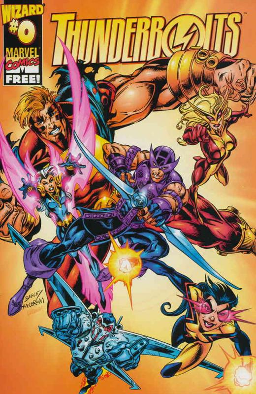 Item: Thunderbolts #0 | Publisher: Marvel | Cover Date: January 1997 | Writer: Kurt Busiek | Artist: Mark Bagley | Cover Artist: Mark Bagley | Appearances: Hawkeye, Songbird, Atlas, Mach-1, Moonstone, Avengers, Thor, Iron Man, Captain America, Scarlet Witch, Vision, Citizen V II, Baron Zemo II, Crimson Cowl | Storylines: A Rare Niight Off | Notes: Free Supplement to Wizard: The Comics Magazine #89 | With Economy shipping, each additional comic ships for just 50 cents more to customers in the USA. This listing contains a stock photo and information from ComicBase™ and © Human Computing. The stock photo is for reference only. If you would like to see a photo of the actual item, please message us prior to purchasing.Seller Information