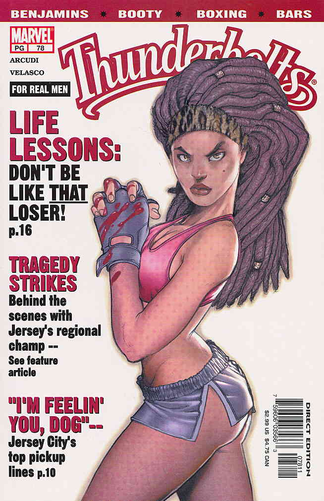 Item: Thunderbolts #78 | Publisher: Marvel | Cover Date: June 2003 | Writer: John Arcudi | Artist: Francisco Ruiz Velasco | Cover Artist: Francisco Ruiz Velasco | Appearances: Battler, Armadillo, Rey Trueno, Daniel Axum | Storylines: How Does It Feel? | With Economy shipping, each additional comic ships for just 50 cents more to customers in the USA. This listing contains a stock photo and information from ComicBase™ and © Human Computing. The stock photo is for reference only. If you would like to see a photo of the actual item, please message us prior to purchasing.Seller Information