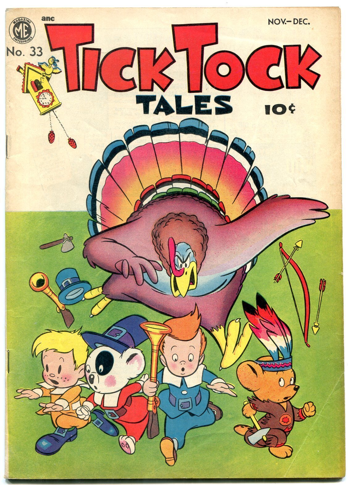 Grade: FNTick Tock Tales #33 1951-Humor Golden Age Funny Animals FN Final issue, rare. Thanksgiving cover. Mighty Atom and Robert Robot appear. Grade: FN SKU: U2-16-201
