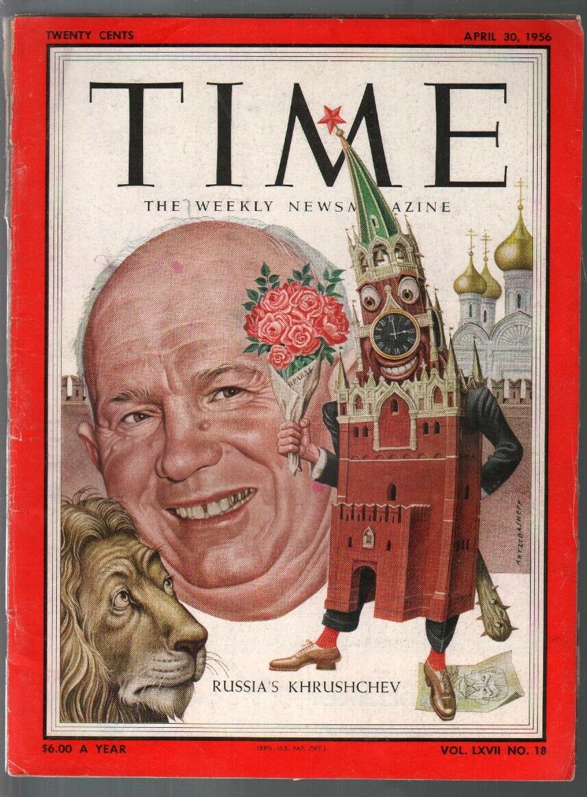 Time Issue: / Year: April 30 1956 Condition: VG-Nikita Khrushchev cover -Historic info & photos Publisher: TimeSku: U2-127-089 Over 100,000 mail orders processed! Buy with confidence.