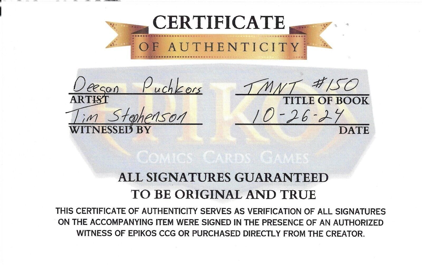 TMNT #150 2024 Signed Deegan Puchkors SCC Store Exclusive Cover IDW EB203