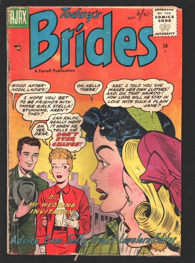 Condition: Condition is G/VG . Please see item description for more information.Today's Brides Issue: 3 / Year: 1956 Condition: G/VG-Bold heavy line art -Love triangle -Spicy Good Girl Art poses -This title was killed by the comics code -Elusive issue Publisher: AjaxSku: EC-02-059 Over 100,000 mail orders processed! Buy with confidence. Track Page Views WithAuctiva's Counter