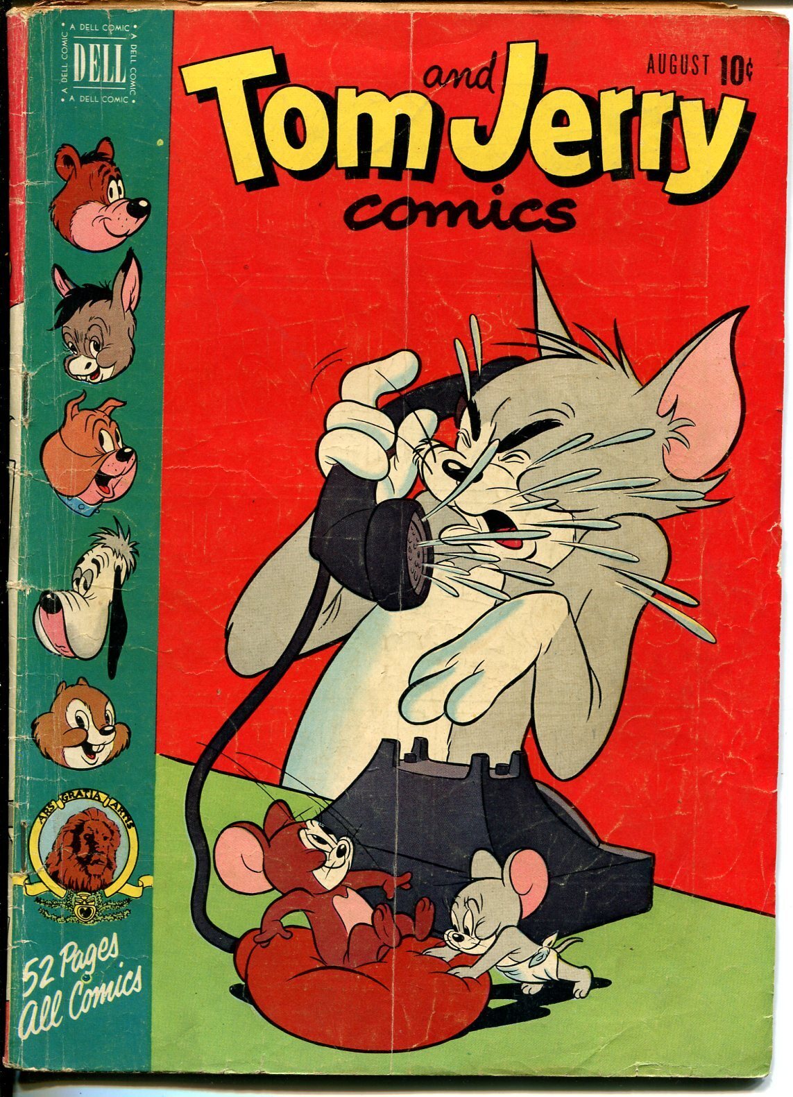 Grade: G/VGTom & Jerry #85 1951-Dell-MGM Cartoons-Barney Bear-Benny Burro-Tuffy-G/VG -Based on the M-G-M Cartoons. -Cover shows Jerry & Tuffy prank Tom with squirting telephone -Barney Bear, Benny Burro, Wuff the Prairie Dog, Droopy Grade: G/VG SKU: CTR-79-099
