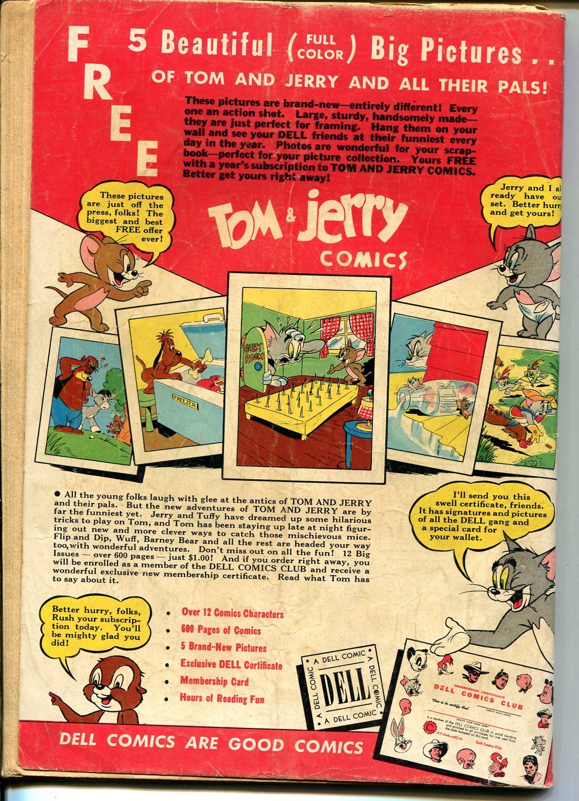 Grade: G/VG Tom & Jerry #85 1951-Dell-MGM Cartoons-Barney Bear-Benny Burro-Tuffy-G/VG -Based on the M-G-M Cartoons. -Cover shows Jerry & Tuffy prank Tom with squirting telephone -Barney Bear, Benny Burro, Wuff the ... Read More