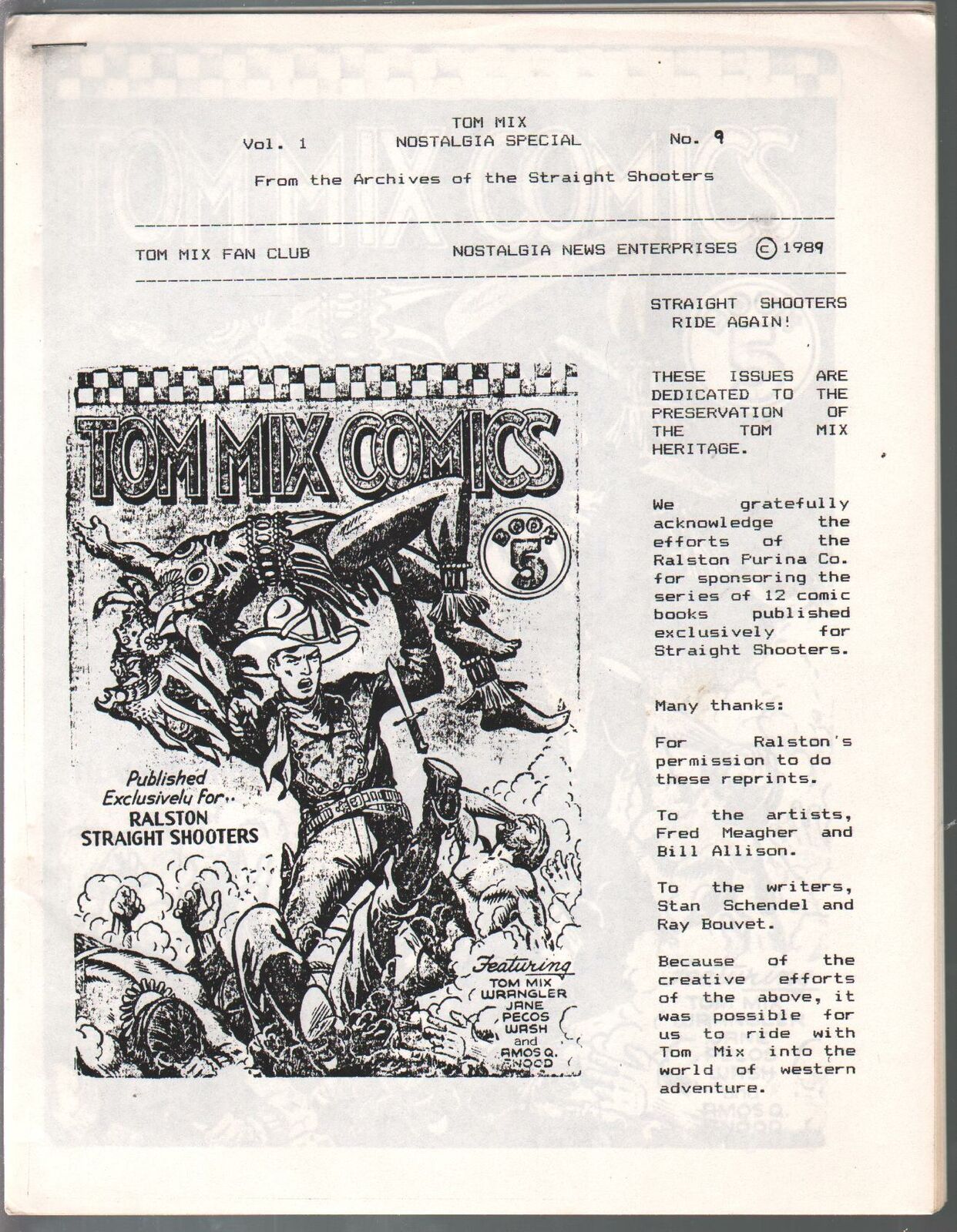 Tom Mix Fan Club Nostalgia Special Issue: 9 / Year: 1989 Condition: FN-Reprints Tom Mix Comic Book #5 Publisher: Nostalgia News Ent.Sku: CTR-03-157 Over 100,000 mail orders processed! Buy with confidence.