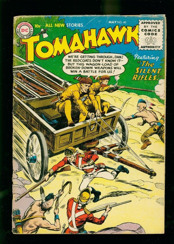 Tomahawk #40 1956- dc western -redcoat cover- silver age g red coats. Spine split almost entirely. 1956 grade: g sku: ck46-040