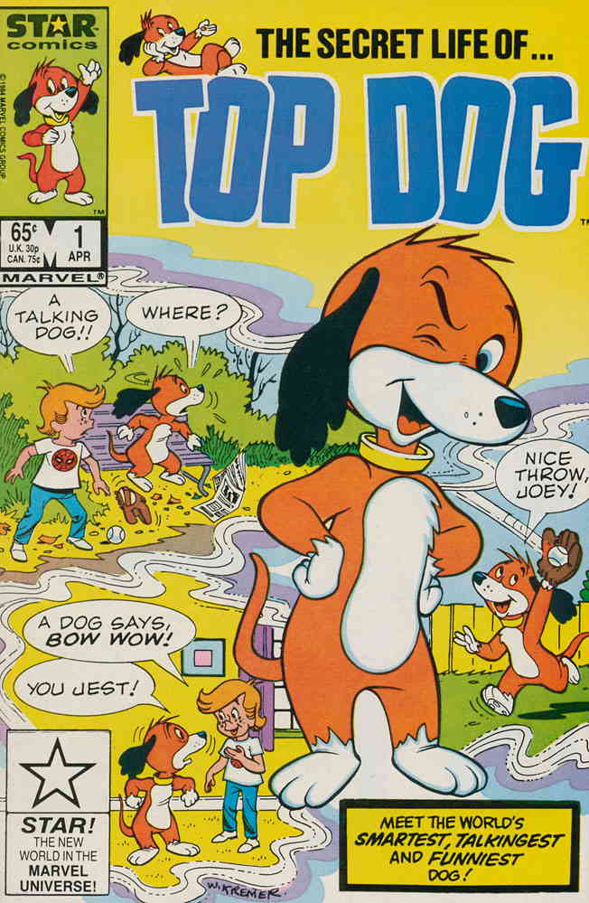 Item: Top Dog #1 | Publisher: Marvel | Cover Date: April 1985 | Writer: Lennie Herman | Artist: Warren Kremer | Cover Artist: Warren Kremer | Appearances: Top Dog | Storylines: The Dog-Gone Beginning; House About a Dog, Mom?; Dognapped | Notes: 1st Appearance of Top Dog | With Economy shipping, each additional comic ships for just 50 cents more to customers in the USA. This listing contains a stock photo and information from ComicBase™ and © Human Computing. The stock photo is for reference only. If you would like to see a photo of the actual item, please message us prior to purchasing.Seller Information