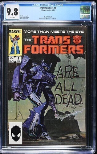 Grade: 9.8 Near Mint/Mint Transformers #5 CGC 9.8.You will receive exactly what is pictured in the listing. Items will be shipped extremely carefully to insure they arrive in excellent condition.All S/H for this au ... Read More