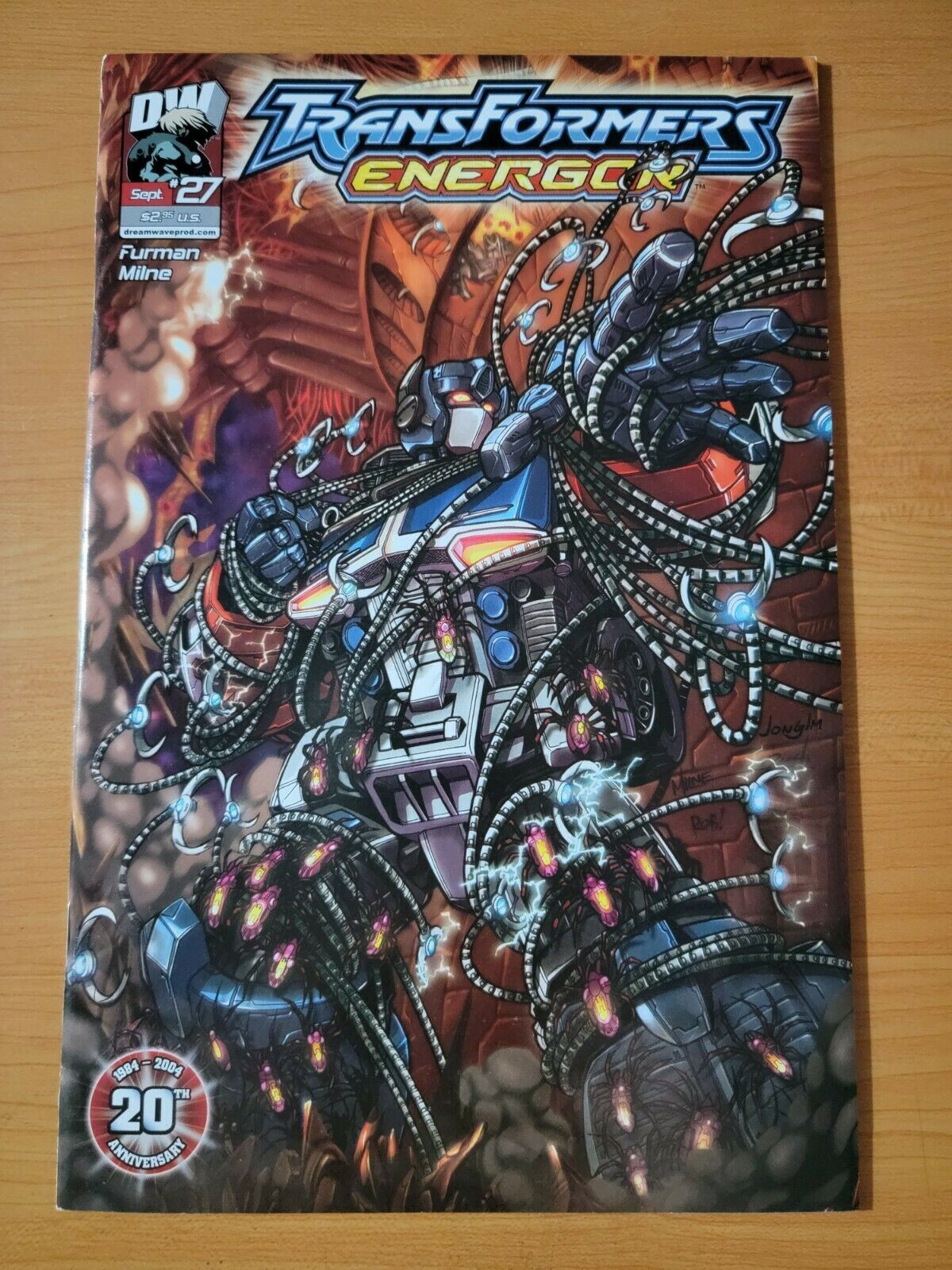 Item DescriptionTransformers Energon #27 Publisher: Dreamwave ComicsPublished: 2002Item Grade/ConditionGrade: NEAR MINTFor more information about this grade and other grades, please see our grading standards.~ AS ALWAYS, WE TAKE HIGH DEFINITION PICTURES OF MOST OF OUR COMICS ~ For more detail use the ZOOM Function and check them out yourself! ~ Pictures are of the EXACT Comics in this listing!Shipping Info:United States: Orders of all sizes, big and small ship for a flat fee of - $3.50 ~WE LOVE FREE SHIPPING ~ This Standard May not apply to US Orders!~International: We use Calculated Shipping! ~ This insures that you get the LOWEST POSSIBLE COST! ~ Please give us one business day to calculate large orders! As a courtesy to our customers, we insure all orders over 50$ US ~ YOU DONT PAY EXTRA!Delivery TimeWe process and ship all orders within 1 business days. Once shipped, estimated U.S. transit time is 2-10 business days; international 14-21 business days.(Orders placed on Friday afternoon as well as weekends will be shipped the next business day as we do not ship on the weekends).PackingOmnomax Traders has mastered packing to ensure our orders of a "damage-free transport."Using the following methods, we have seen a nearly perfect 99% success rate for undamaged comics!Here is how our orders ship:Orders of 1-10 items:Bagged AND Boarded ( If Comic value is 10$ or More )Tightly secured between 2 stiff pieces of corrugated cardboardSealed on all 4 sides with strong packing tape (Items doesn't even wiggle).Protected in a large mailing envelope Orders of 10 and more:All items are bagged, and bottom item is in a board for extra protection of other items.All items are then placed together in a heavy bag. Tons of heavy packing paper &/Or Bubblewrap shields the items.Durable boxes hold the items*Now this method is nearly perfect! however we have seen damage happen to items ( only once or twice a year ) ~ this is often due to bad handling by the postal service. Always remember to contact us if this happens! we are committed to quality service!*Offers History