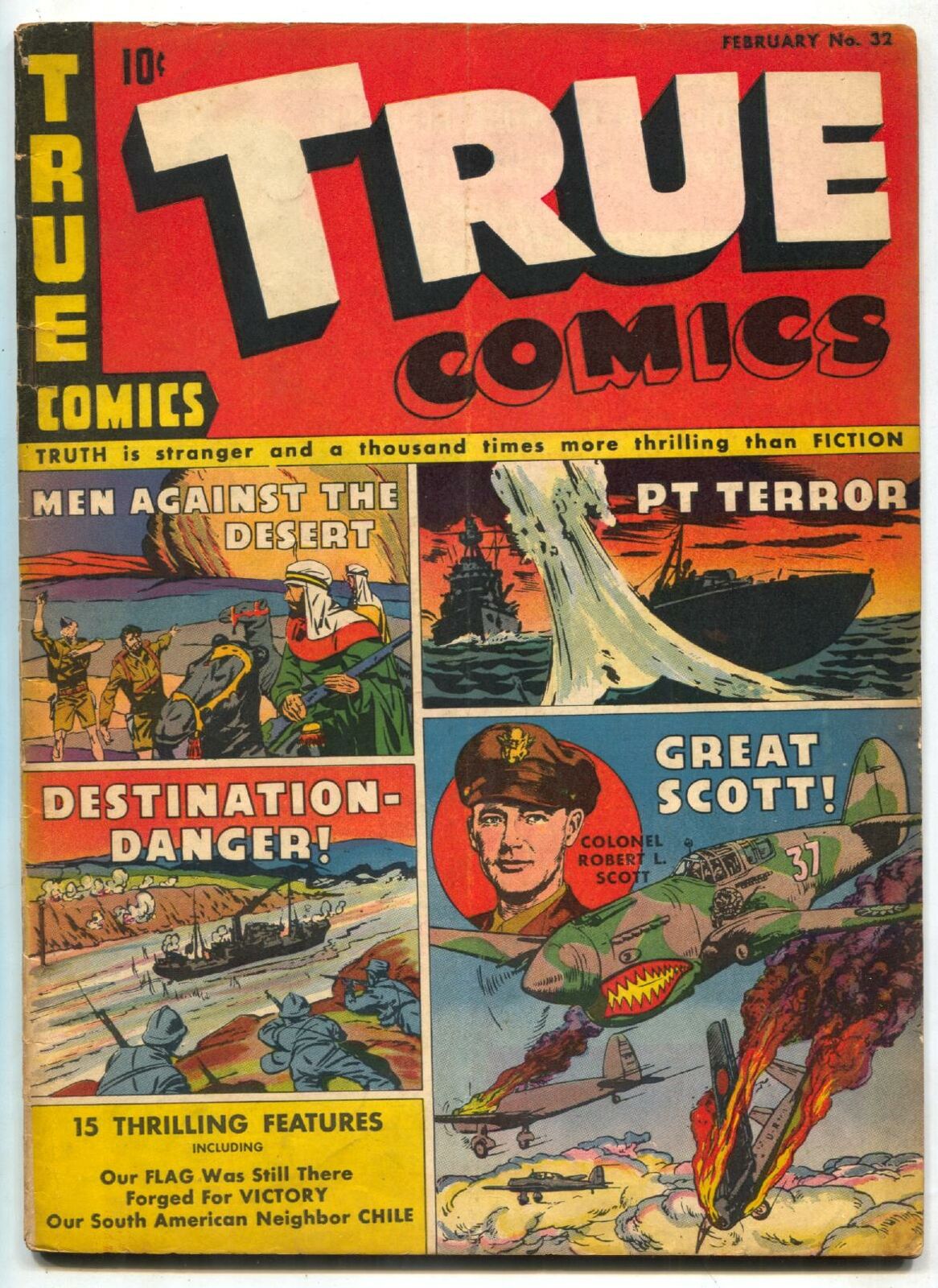 True Comics #32 1944- WWII- Colonel Robert L Scott VG+