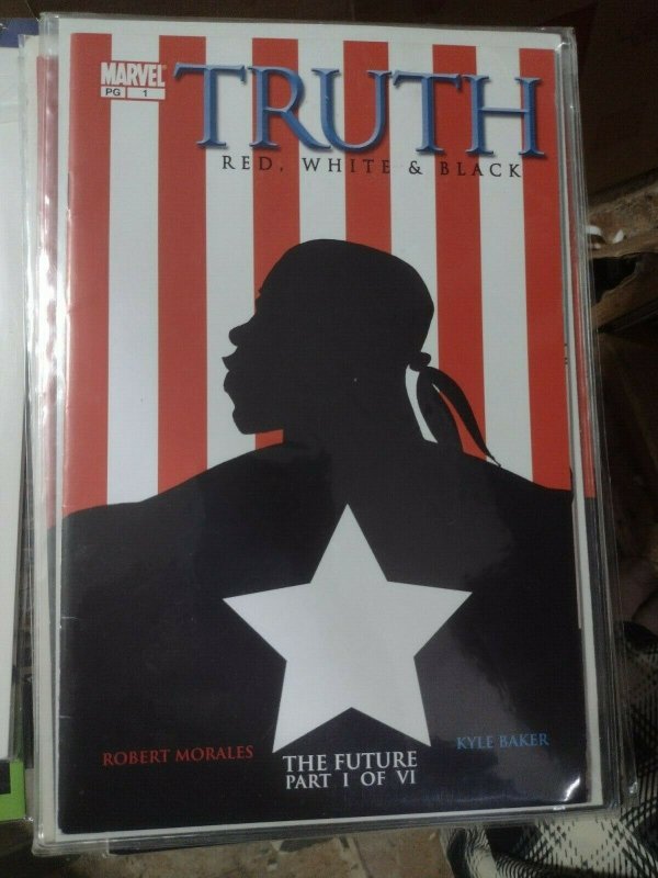 View more great items FOR AUCTION IS1 COMIC BOOK FROM THE SERIES " TRUTH, RED WHITE AND BLACK " VOLUME 1 ( 1989-1998 ) 1.50 COVER PRICEISSUE # 1 KEY 1ST APPERANCE ISAIAH BRADLEY , THE 1ST BLACK CAPTAIN AMERICA, DISNEYS FALCON AND THE WINTER SOLDIERCover By Kyle Baker. Robert Morales (w). Kyle Baker (a). In the tradition of ORIGIN, Marvel reveals the shocking secret history of Captain America! In 1940 there was a man who had many of the same qualities as Steve Rogers - save for one, the color of his skin - and TRUTH is his story! This six-issue monthly miniseries - guaranteed to challenge preconceptions - features the distinctive digitally painted art of award-winning artist Kyle Baker! PUBLISHED BY MARVEL COMICS THE COMICS ARE BAGGED AND , THE COMICS WILL ALSO BE SHIPPED WITH EXTRA PROTECTION TO HELP PREVENT DAMAGE BY POST OFFICE. SHIPPING PRICING SHIPPING IS $ 5.99 FOR THIS ITEM AND ONLY $0.75 CENTS EACH ADDITIONAL ITEM, I WILL COMBINE ALL ITEMS Check out my other items! look at my feedback , I am a top rated 100 % + Hip seller........I have been selling on Hip for 10 years, a seller you can trust and paypal verified.I will work with you in any payment situation, Buy it now from a trusted seller If you have any problems, please use the contact seller link or email me directly Payment terms: PAYPAL is the only form of payment this site allows and payment is expected within 48 hours of auction ending. I will ship your merchandise within 1 DAY (once payment has cleared) or the next USPS BUSINESS DAY. SHIPPING TERMS: I ship normally 2-3 times a week, Normally on Mondays, Wednesdays and Fridays, sometimes Saturdays depending on volume. Please be patient for the U.S. Post Office to deliver your product in a timely manner. Normal shipping times for shipping is 1-10 days. Please visit usps.com to see the proper schedule of days for each delivery method. If an item is shipped back to us for ANY reason, we do not reimburse your shipping cost. THANKS AND ENJOY :) style="text-align:center" style="text-decoration:none" href="" src="" border="0" Please allow additional handling time due to HipS new payment processing, once received they send funds to my bank which adds 1-4 additional days beforeI receive the funds for use to purchase postage to ship.