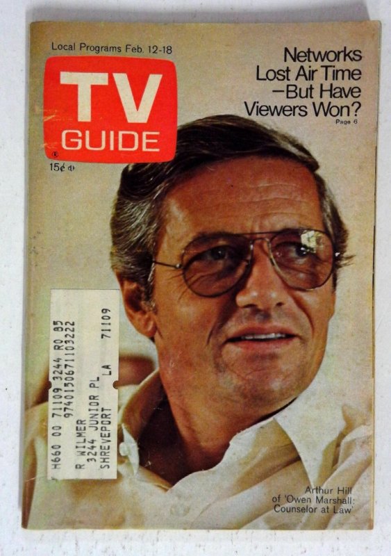 TV Guide 2/12/1972 Arthur Hill VG TV Guide Cover features Arthur Hill of 'Owen Marshall: Counselor at Law'. Title: TV Guide Issue: N/A Grade: VG SKU: U1-06-530