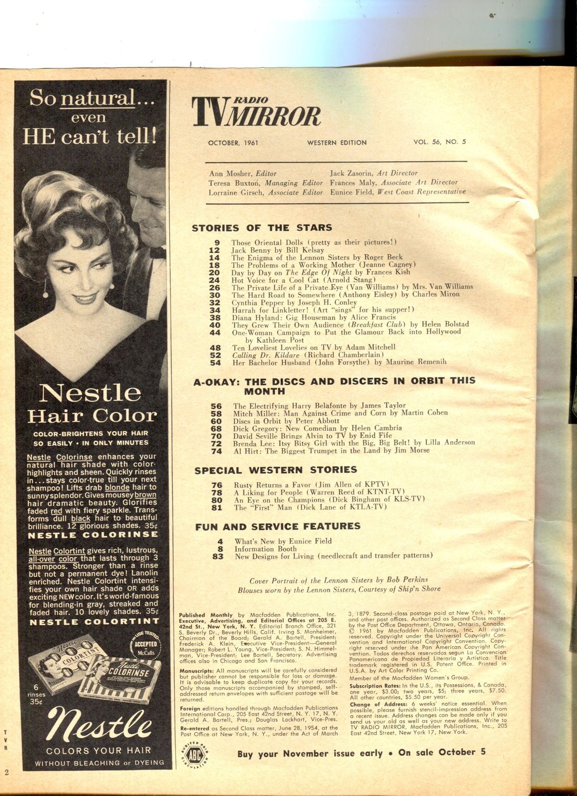 TV Radio Mirror-Lennon Sisters-Jack Benny-Van Williams-June-1961