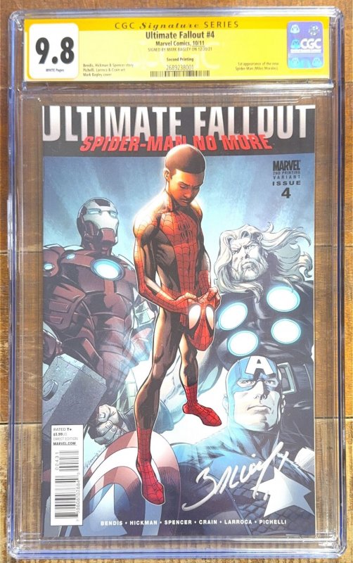 Ultimate Fallout #4 2nd Print (2011) CGC Sig Series 9.8 Signed by Mark Bagley!