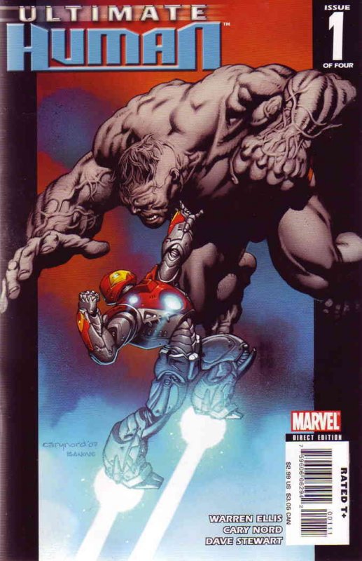Item: Ultimate Human #1 | Publisher: Marvel | Cover Date: March 2008 | Writer: Warren Ellis | Artist: Cary Nord | Cover Artist: Cary Nord | Appearances: Iron Man (Ultimate), Hulk (Ultimate), Leader (Ultimate) | Stor ... Read More