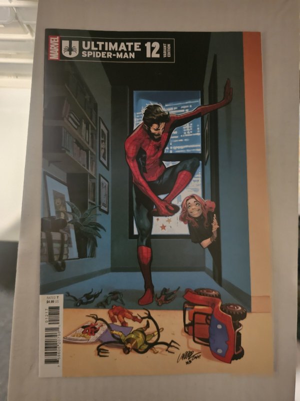 Grade: 9.2 Near Mint- The product is a Pepe Larraz 1:25 variant cover of Ultimate Spider-Man #12, with art by Marco Checchetto and featuring Spider-Man as the main character. This comic book is part of the Marvel U ... Read More