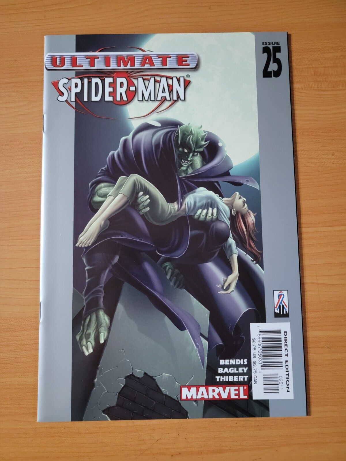 Item DescriptionUltimate Spider-Man #25 Direct Market EditionPublisher: Marvel ComicsPublished: 2002Item Grade/ConditionGrade: NEAR MINTFor more information about this grade and other grades, please see our grading standards.~ WE TAKE HIGH DEFINITION PICTURES OF OUR COMICS ~ For more detail use the ZOOM Function and check them out yourself! ~Shipping Info:United States: Comic Book & Magazine Orders of all sizes, big and small ship for a flat Single Shipping ChargeInternational: We use Calculated Shipping! ~ This insures that you get the LOWEST POSSIBLE COST! ~ Please give us one business day to calculate large orders! The Calculator for Hip is pretty bad for international, contact us if you are looking to order multiple books so we can help you make it work on the back end! As a courtesy to our customers, we insure all orders over 50$ US ~ YOU DONT PAY EXTRA!Delivery TimeWe process and ship all orders within 1 business days. Once shipped, estimated U.S. transit time is 2-10 business days; international 14-21 business days.(Orders placed on Friday afternoon as well as weekends will be shipped the next business day as we do not ship on the weekends).PackingOmnomax Traders has mastered packing to ensure our orders of a "damage-free transport."Using the following methods, we have seen a nearly perfect 99% success rate for undamaged comics!Here is how our orders ship:All Orders :Bagged AND Boarded, ALWAYS NO EXCEPTIONS!Shipped in a Gemini Comic Mailer OR Tightly secured between 4x stiff pieces of corrugated cardboard (double Sandwiched)Sealed on all 4 sides with strong packing tape (Items doesn't even wiggle).:*Now this method is nearly perfect! however we have seen damage happen to items ( only once or twice a year ) ~ this is often due to bad handling by the postal service. Always remember to contact us if this happens! we are committed to quality service!*Offers History