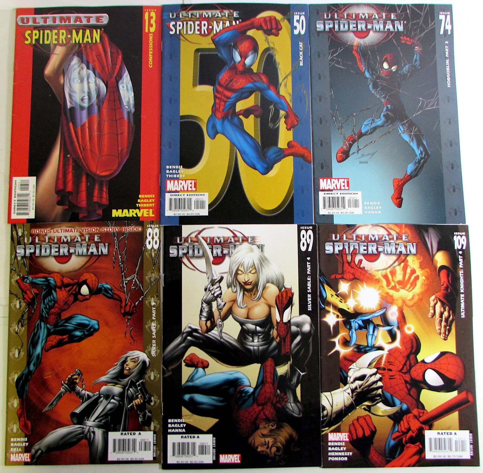 Ultimate Spider-Man Lot 6 #13, 50, 74, 88, 89, 109 2001 Marvel Black Cat Comics