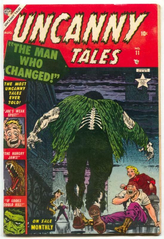 Uncanny Tales Issue: 11 / Year: 1953 Condition: VGWild pre-code ATLAS horror. Great cover! A-bomb panel. Small hole in the Atlas Globe, front cover slightly off cut - printer's defect. Light stain on border of a few pages. Publisher: AtlasSku: U2-104-246 Over 100,000 mail orders processed! Buy with confidence.