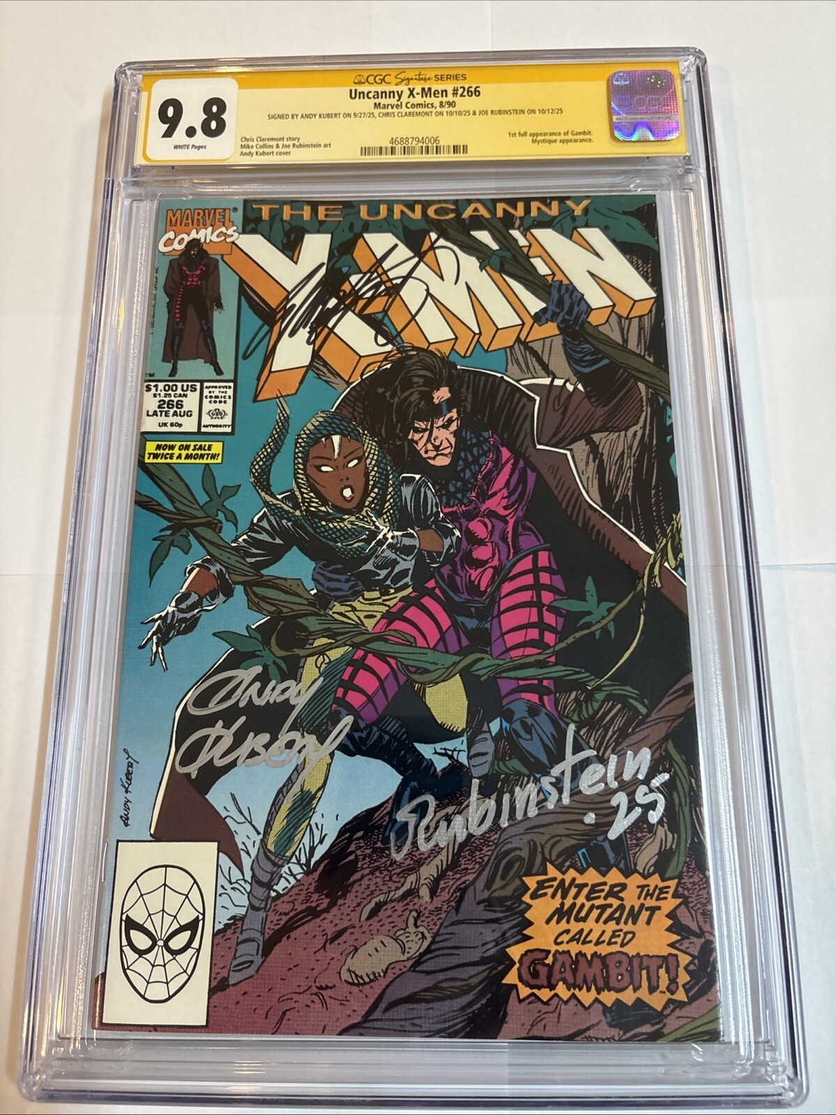 Uncanny X-Men (1990) # 266 (CGC 9.8 WP) Signed Claremont + Kubert + Rubinstein