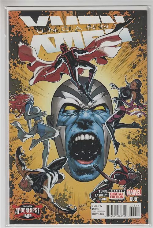Grade: 9.2 Near Mint-UNCANNY X-MEN (2016 MARVEL) #6 CVR A GREG LAND Item Number: CXWH-A30603 'APOCALYPSE WARS' CONTINUES! The first time original X-Man Archangel met Apocalypse, he was transformed into the homicidal Horseman of Death. Breaking free of Apocalypse's grasp, Archangel eventually returned to the X-Men and formed a relationship with his teammate, Psylocke. Now, years later, Psylocke has found a vacant, drone-like Archangel in the guise of Death once more. Fearing he's again fallen under Apocalypse's sway, Psylocke and her team of X-Men embark on a mission to save Archangel's life. But little do they know that they are about to discover a far more horrifying truth than they could have imagined� Rated T+