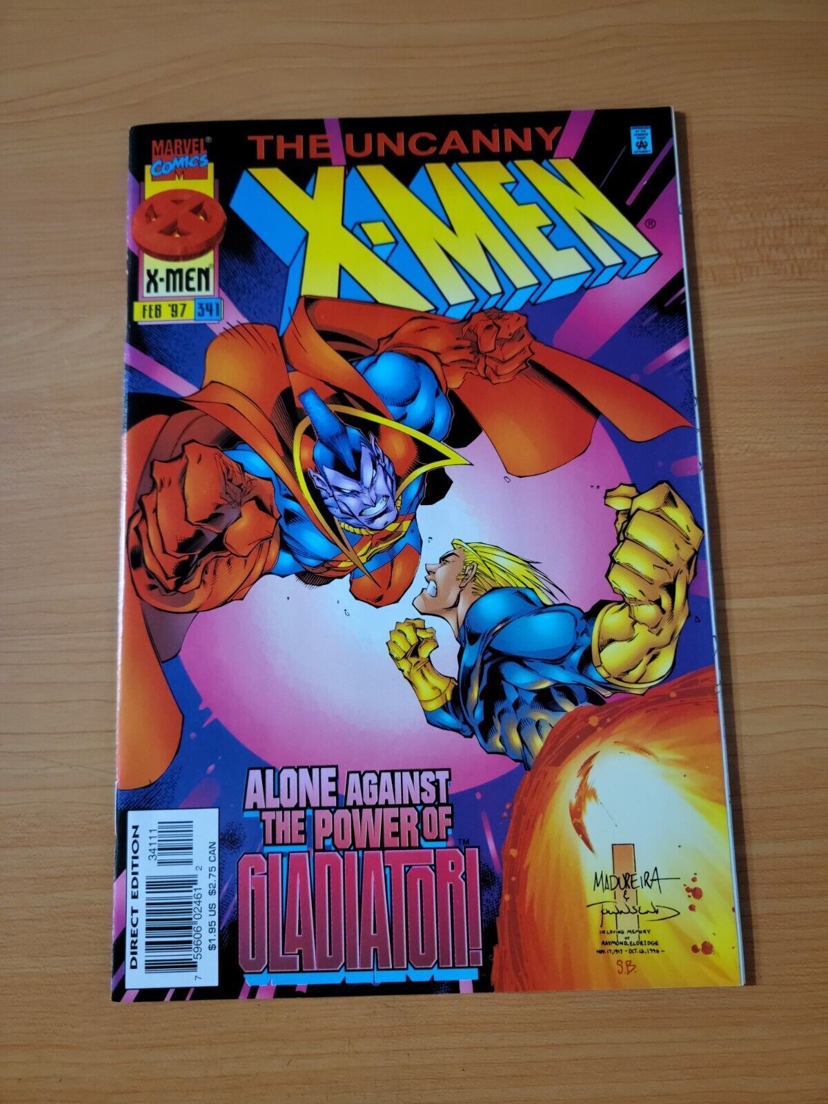 Item DescriptionUncanny X-Men #341 Direct Market EditionPublisher: Marvel ComicsPublished: 1997Item Grade/ConditionGrade: NEAR MINTFor more information about this grade and other grades, please see our grading standards.~ WE TAKE HIGH DEFINITION PICTURES OF OUR COMICS ~ For more detail use the ZOOM Function and check them out yourself! ~Shipping Info:United States: Comic Book & Magazine Orders of all sizes, big and small ship for a flat Single Shipping ChargeInternational: We use Calculated Shipping! ~ This insures that you get the LOWEST POSSIBLE COST! ~ Please give us one business day to calculate large orders! The Calculator for Hip is pretty bad for international, contact us if you are looking to order multiple books so we can help you make it work on the back end! As a courtesy to our customers, we insure all orders over 50$ US ~ YOU DONT PAY EXTRA!Delivery TimeWe process and ship all orders within 1 business days. Once shipped, estimated U.S. transit time is 2-10 business days; international 14-21 business days.(Orders placed on Friday afternoon as well as weekends will be shipped the next business day as we do not ship on the weekends).PackingOmnomax Traders has mastered packing to ensure our orders of a "damage-free transport."Using the following methods, we have seen a nearly perfect 99% success rate for undamaged comics!Here is how our orders ship:All Orders :Bagged AND Boarded, ALWAYS NO EXCEPTIONS!Shipped in a Gemini Comic Mailer OR Tightly secured between 4x stiff pieces of corrugated cardboard (double Sandwiched)Sealed on all 4 sides with strong packing tape (Items doesn't even wiggle).:*Now this method is nearly perfect! however we have seen damage happen to items ( only once or twice a year ) ~ this is often due to bad handling by the postal service. Always remember to contact us if this happens! we are committed to quality service!*Offers History