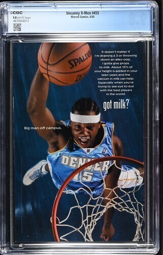 Grade: 9.8 Near Mint/MintUncanny X-Men #455 CGC 9.8.You will receive exactly what is pictured in the listing. Items will be shipped extremely carefully to insure they arrive in excellent condition.All S/H for this auction varies. I do combine items for shipping. Insurance is included with all shipping. For International buyers please note any custom fees charged by your country are your responsibility. I will always try to accommodate any special requests.If there are ever any problems regarding your purchase please contact me prior to putting in claims, leaving negative feedback, or giving out low ratings. I aim for 5 out of 5 stars all the time and will always do my best to fix any issues. I always make sure my customers are happy!!!!I ship fast and secure, just check my feedback. Please feel free to E-mail me with any questions or if you need larger scans. Please check out my other auctions!! Happy Bidding. Good Luck.