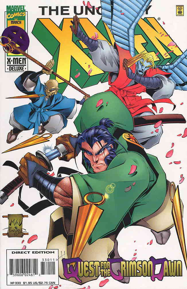 Item: Uncanny X-Men, The #330 | Publisher: Marvel | Cover Date: March 1996 | Writer: Jeph Loeb, Scott Lobdell | Artist: Joe Madureira | Cover Artist: Joe Madureira | Appearances: Archangel, Wolverine, Gomurr the Ancient, Doctor Strange, Gambit, Proctor Tar, Beast, Professor X, Psylocke | Storylines: Quest for the Crimson Dawn | With Economy shipping, each additional comic ships for just 50 cents more to customers in the USA. This listing contains a stock photo and information from ComicBase™ and © Human Computing. The stock photo is for reference only. If you would like to see a photo of the actual item, please message us prior to purchasing.Seller Information
