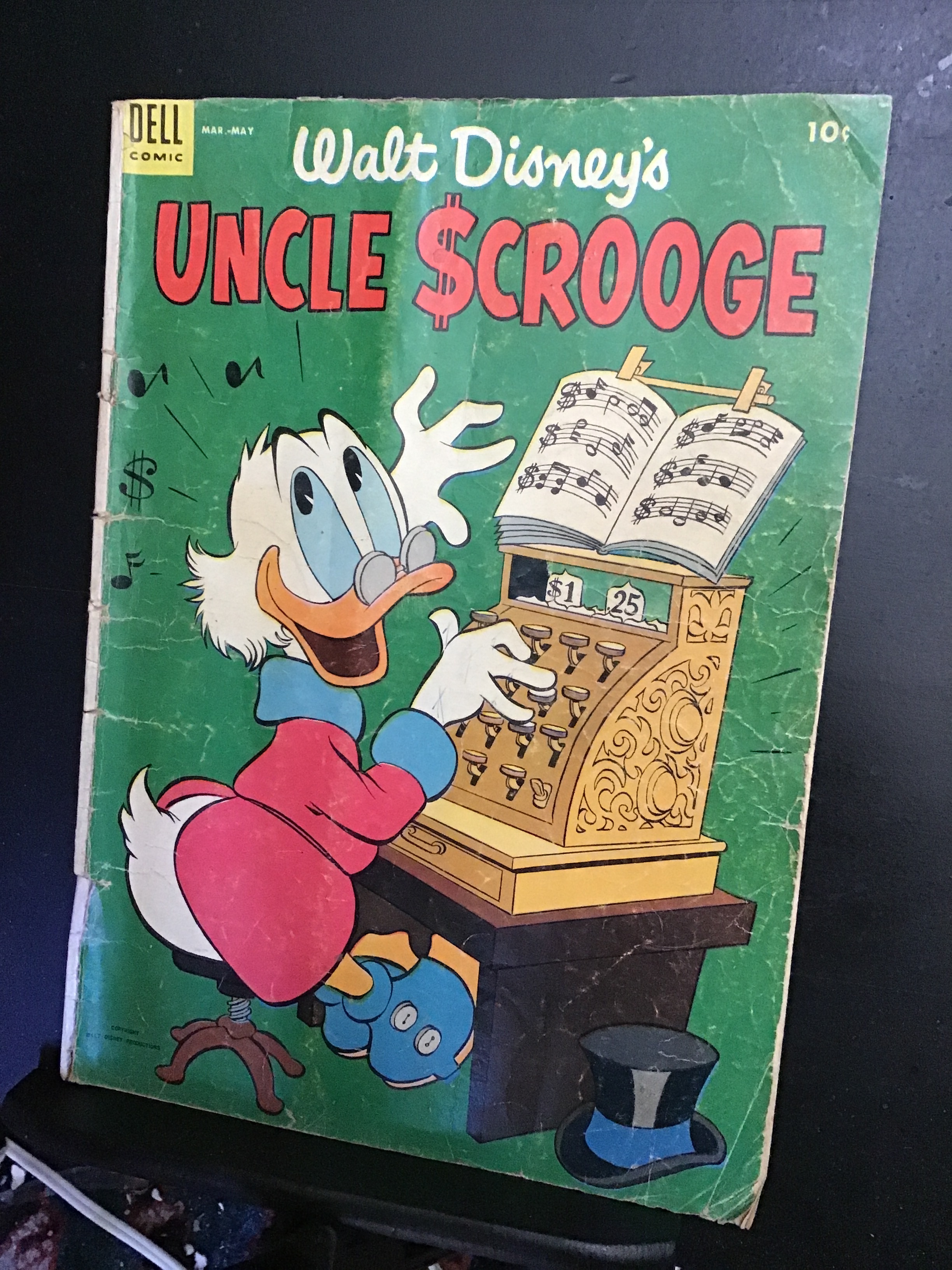 Uncle Scrooge #5 (1954) This book has deep rich color and decent eye-appeal on this all time classic Carl barks uncle Scrooge cover! The book is well attached at the centerfold staples. With cream/slight heavy cream tint pages and cream/slight Heavy cream tint edged inside covers. We have adjusted the grade accordingly for the page quality, The cover being glue repaired etc. there are unfolded tip creases on the upper and outer ends of the inside covers as well as the covers themselves. With wear appropriate grade. Note any glare or shadow on the comic book is from the camera and not on the book itself unless otherwise noted.Seller Information