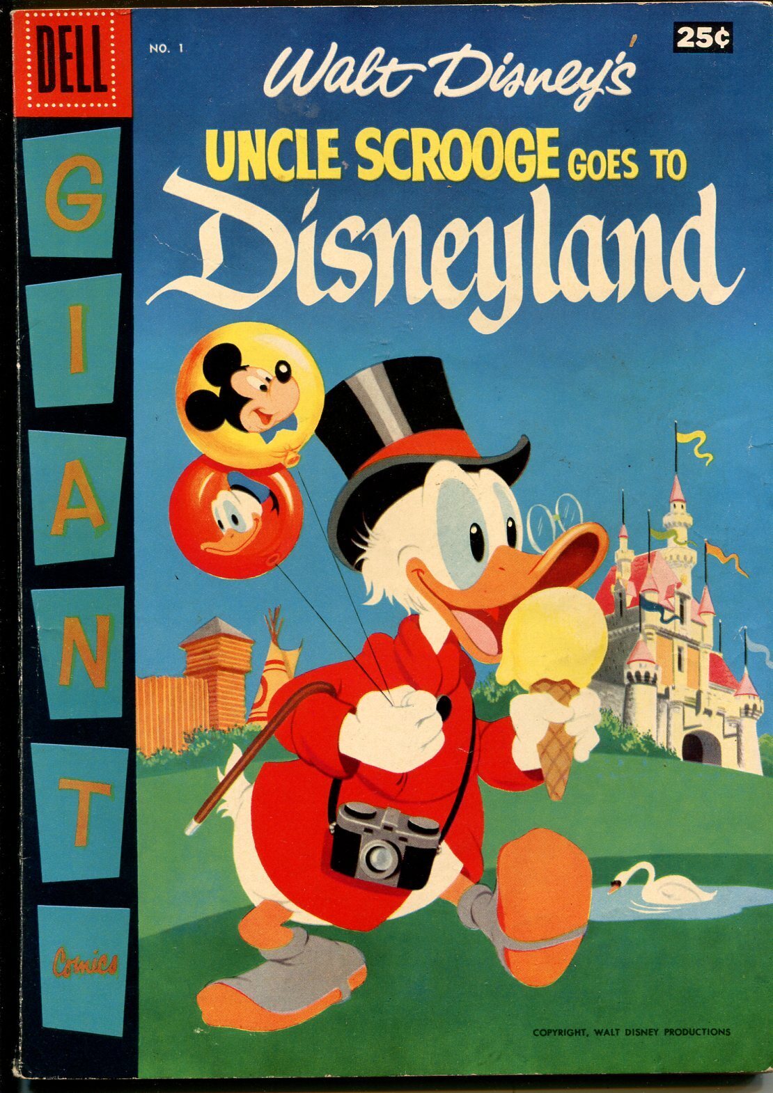 Grade: VG/FNUncle Scrooge Goes To Disneyland #1 1957-Dell-Giant-Carl Barks art-variant-VG/FN -First issue -Giant -Carl Barks art -Variant Edition has 6 pictures of Uncle Scrooge on the back cover -Glossy cover Grade: VG/FN SKU: U15-70-082