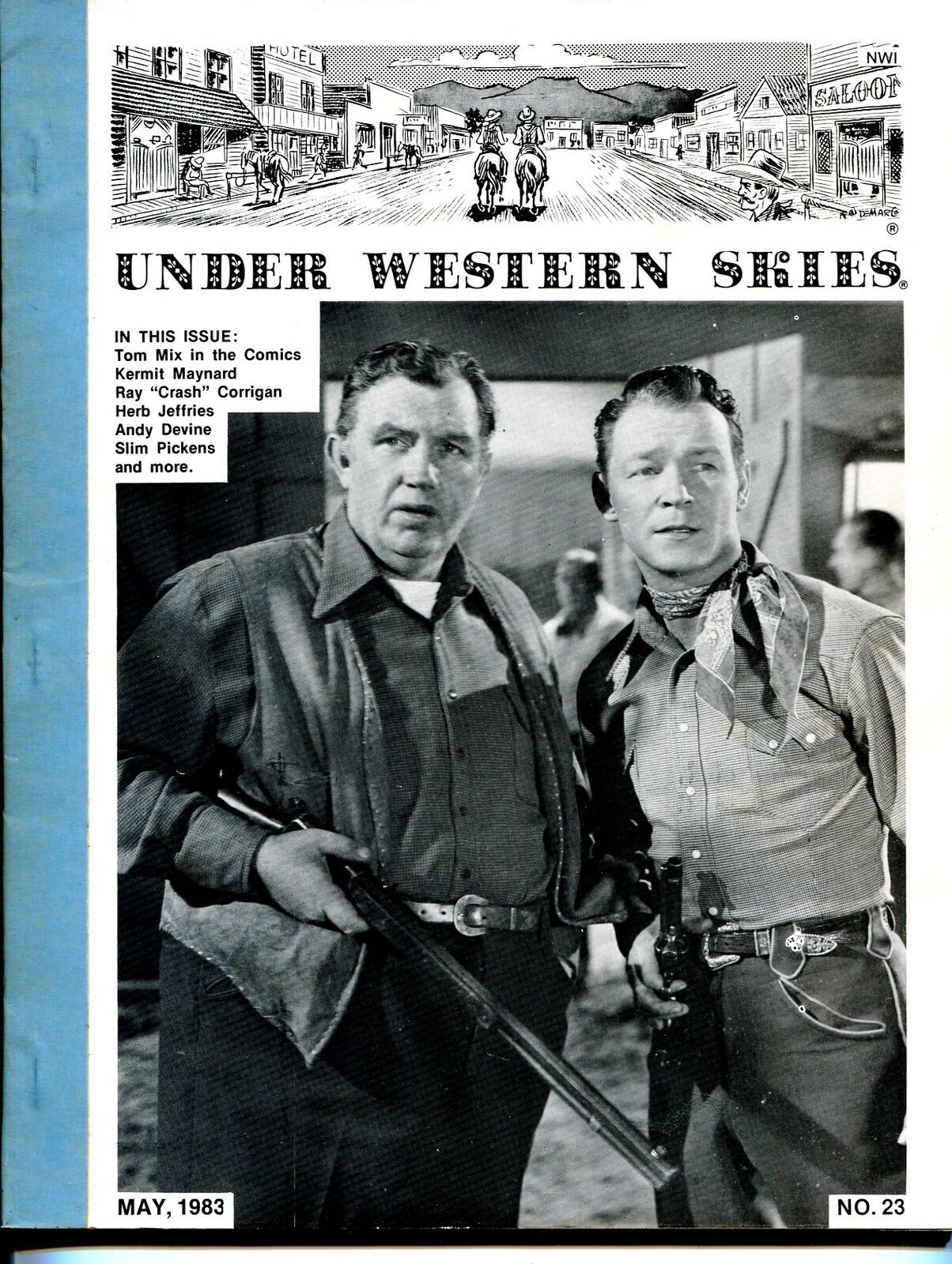 Under Western Skies Issue: 23 / Year: May 1983 Condition: FN-Andy Devine & Roy Rogers -Tom Mix in comics -"Crash" Corrigan, Slim Pickens, Kermit Maynard, Herb Jeffries -This issue is loaded! -This fanzine highlights historic B-Western movies and stars Publisher: N/ASku: U14-52-001 Over 100,000 mail orders processed! Buy with confidence. Track Page Views WithAuctiva's Counter