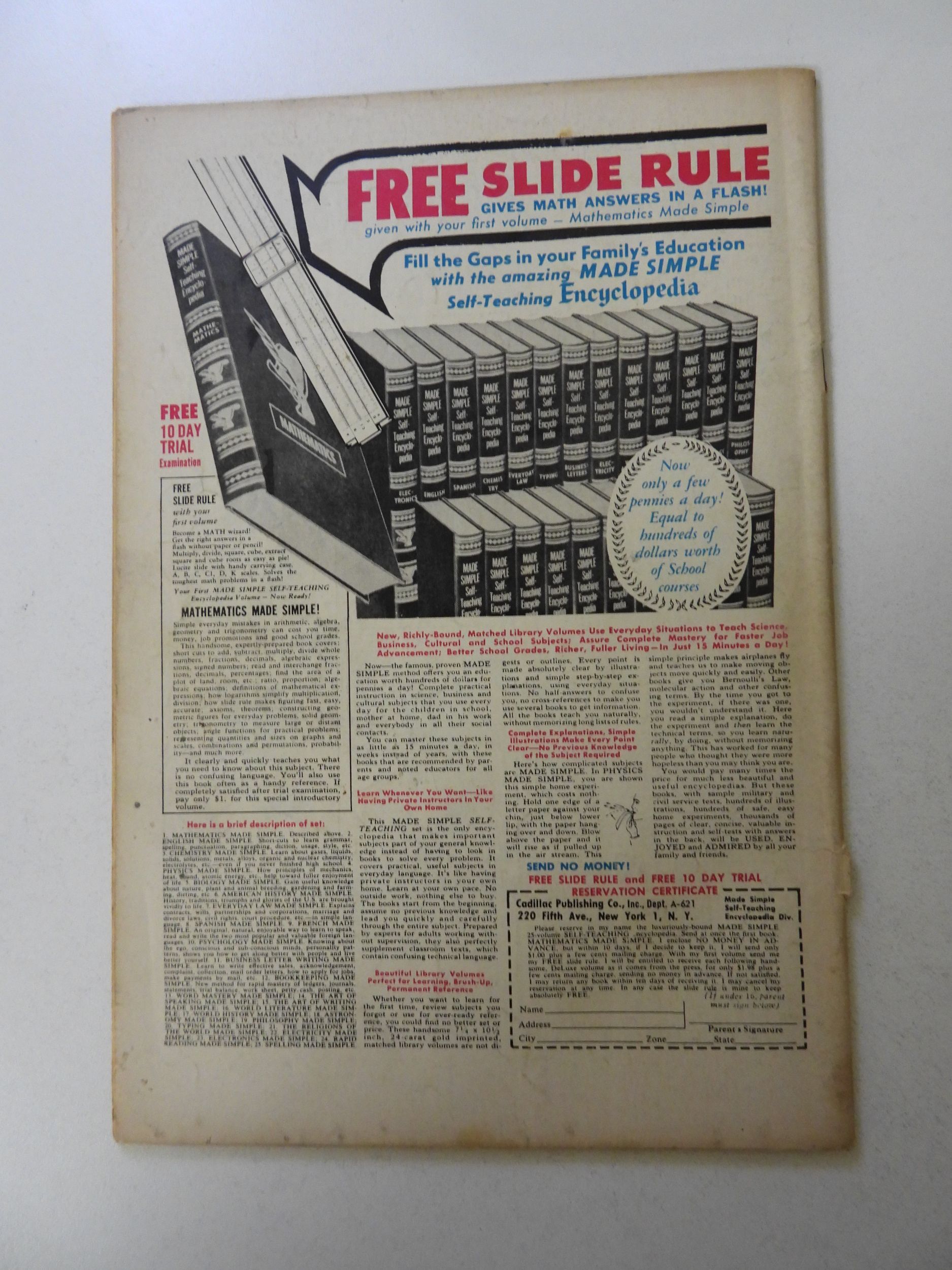 date stamp front cover, bottom staple detached from cover