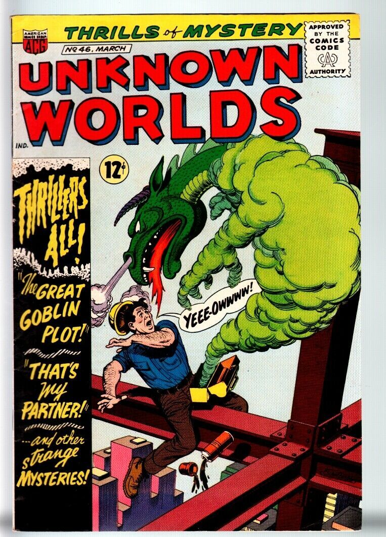 UNKNOWN WORLDS #46-1966-ACG-HORROR-WILD DRAGON COVER-FN+ FN+