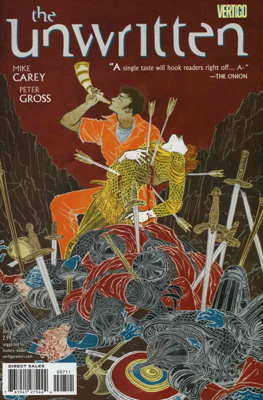 Item: Unwritten, The #7 | Publisher: DC/Vertigo | Cover Date: January 2010 | Writer: Mike Carey, Gabriel Bá | Artist: Peter Gross, Fábio Moon | Cover Artist: Yuko Shimizu | Storylines: Inside Man, Part 2; The Song of Roland | Notes: Preview of Daytripper | With Economy shipping, each additional comic ships for just 50 cents more to customers in the USA. This listing contains a stock photo and information from ComicBase™ and © Human Computing. The stock photo is for reference only. If you would like to see a photo of the actual item, please message us prior to purchasing.Seller Information