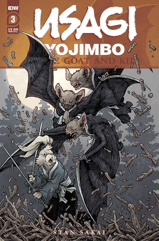 USAGI YOJIMBO LONE GOAT & KID #3 (OF 6) Featuring the start of the classic two-part tale "Blood Wings"! Usagi has stumbled into a village besieged by ruthless bat ninjas! With seemingly no way out and a new conspir ... Read More