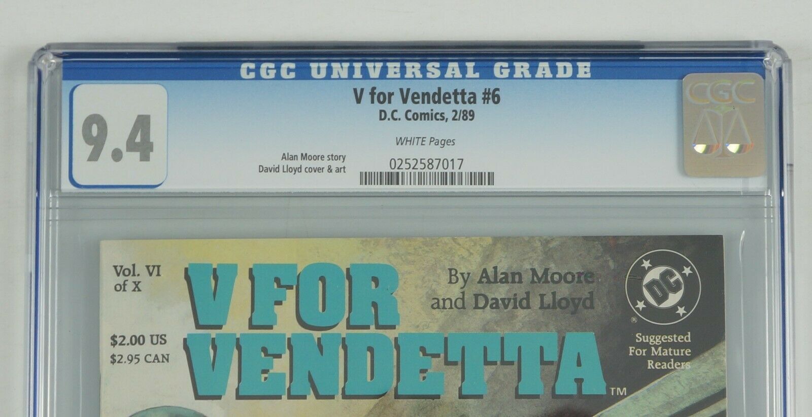 V For Vendetta #6 CGC 9.4 alan moore - david lloyd - dc comics 1989 white pages