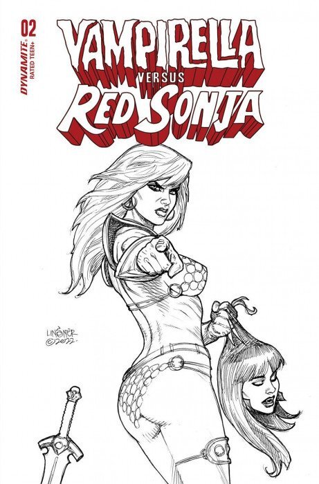 Vampirella Versus Red Sonja #2R VF/NM ; Dynamite | FOC 1:10 variant Linsner B&W