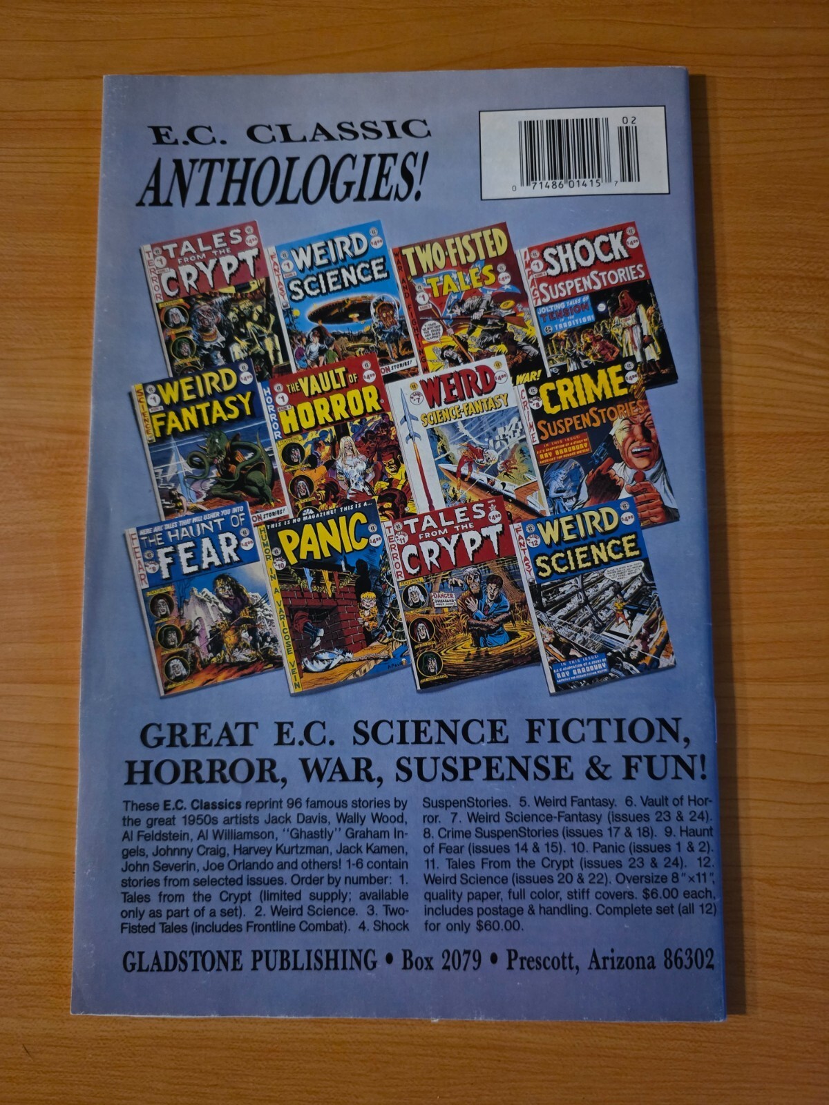 Item DescriptionVault of Horror #4Publisher: Gladstone ComicsPublished: 1991Item Grade/ConditionGrade: NEAR MINTFor more information about this grade and other grades, please see our grading standards.~ WE TAKE HIGH DEFINITION PICTURES OF OUR COMICS ~ For more detail use the ZOOM Function and check them out yourself! ~Shipping Info:United States: Comic Book & Magazine Orders of all sizes, big and small ship for a flat Single Shipping ChargeInternational: We use Calculated Shipping! ~ This insures that you get the LOWEST POSSIBLE COST! ~ Please give us one business day to calculate large orders! The Calculator for Hip is pretty bad for international, contact us if you are looking to order multiple books so we can help you make it work on the back end! As a courtesy to our customers, we insure all orders over 50$ US ~ YOU DONT PAY EXTRA!Delivery TimeWe process and ship all orders within 1 business days. Once shipped, estimated U.S. transit time is 2-10 business days; international 14-21 business days.(Orders placed on Friday afternoon as well as weekends will be shipped the next business day as we do not ship on the weekends).PackingOmnomax Traders has mastered packing to ensure our orders of a "damage-free transport."Using the following methods, we have seen a nearly perfect 99% success rate for undamaged comics!Here is how our orders ship:All Orders :Bagged AND Boarded, ALWAYS NO EXCEPTIONS!Shipped in a Gemini Comic Mailer OR Tightly secured between 4x stiff pieces of corrugated cardboard (double Sandwiched)Sealed on all 4 sides with strong packing tape (Items doesn't even wiggle).:*Now this method is nearly perfect! however we have seen damage happen to items ( only once or twice a year ) ~ this is often due to bad handling by the postal service. Always remember to contact us if this happens! we are committed to quality service!*Offers History