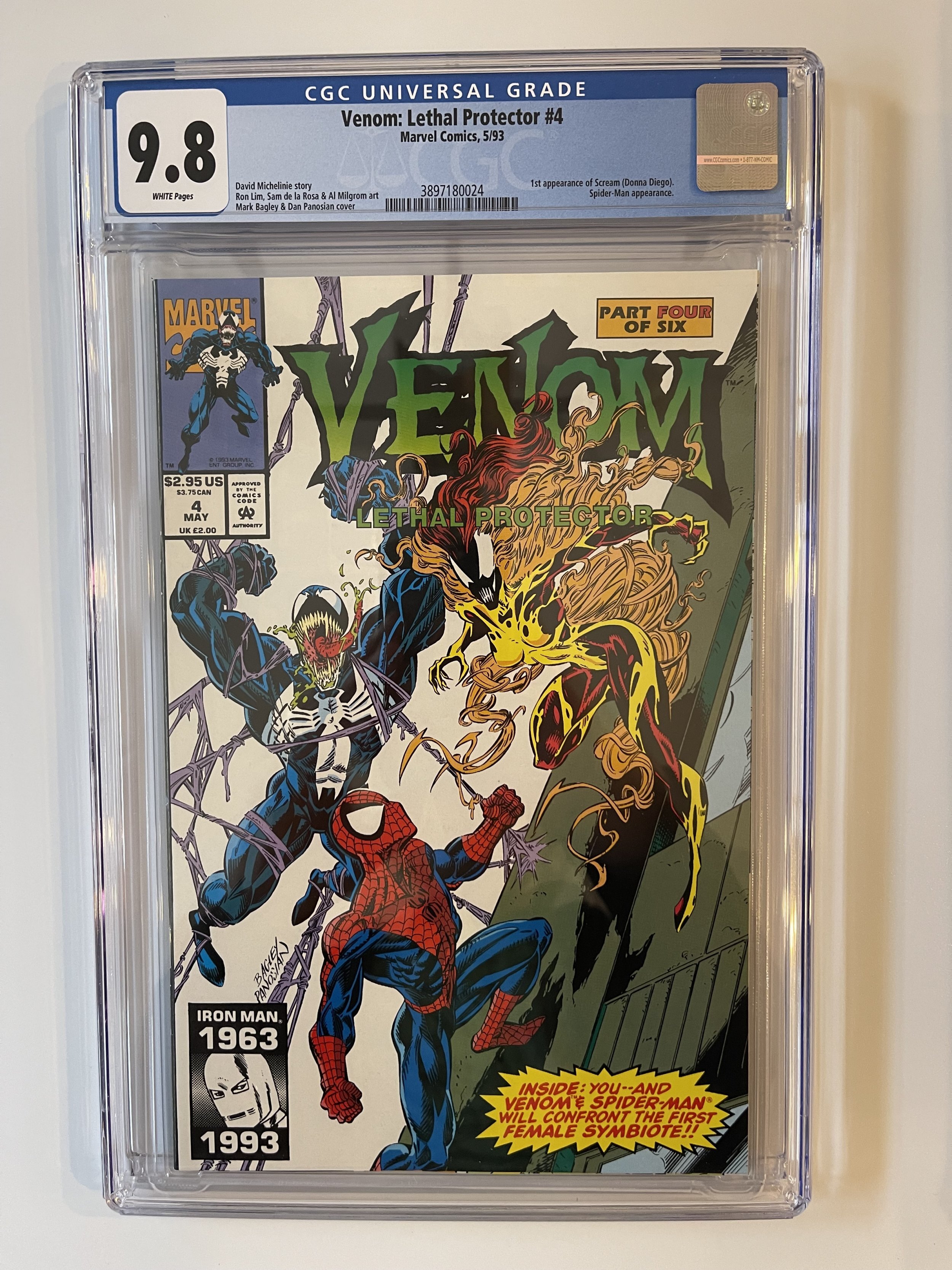 Venom Lethal Protector #4 CGC 9.8 1st Appearance Of Scream White Pages (1993) The pictures above represent the exact item you are going to receive. They are NOT stock pictures. There are no missing pages, rips or ... Read More