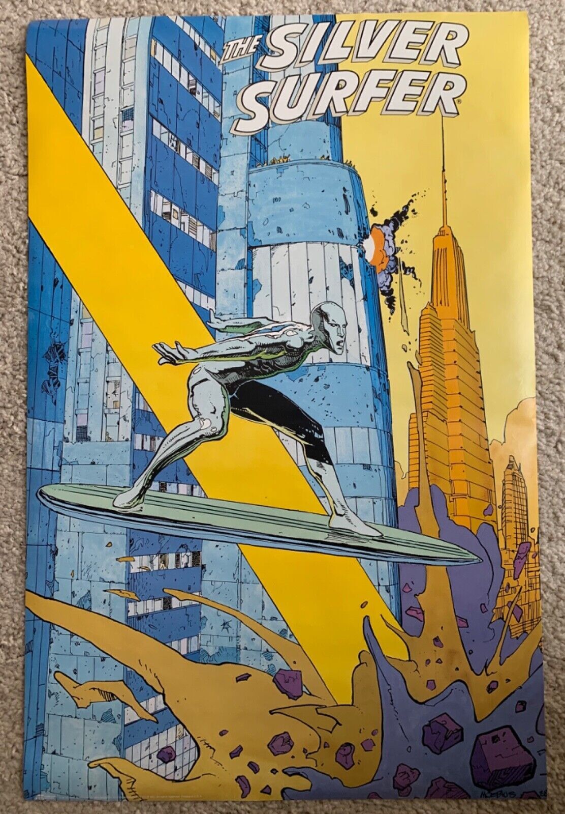 Vintage 1988 Licensed Marvel SILVER SURFER Moebius Poster!