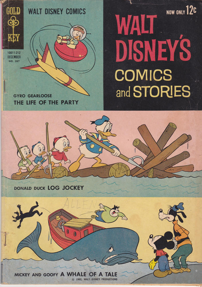 Walt Disney Comics and Stores #267 by Gold Key Comics copywrite 1962. I have graded the comic book, using the Overstreet Grading Guide, at VERY GOOD with the following defects: Light marks along the spine. The corners are rounded. There are some pencil marks in the cover. There are some light wrinkles through out the cover.There is some yellowing of the pages.Seller Information