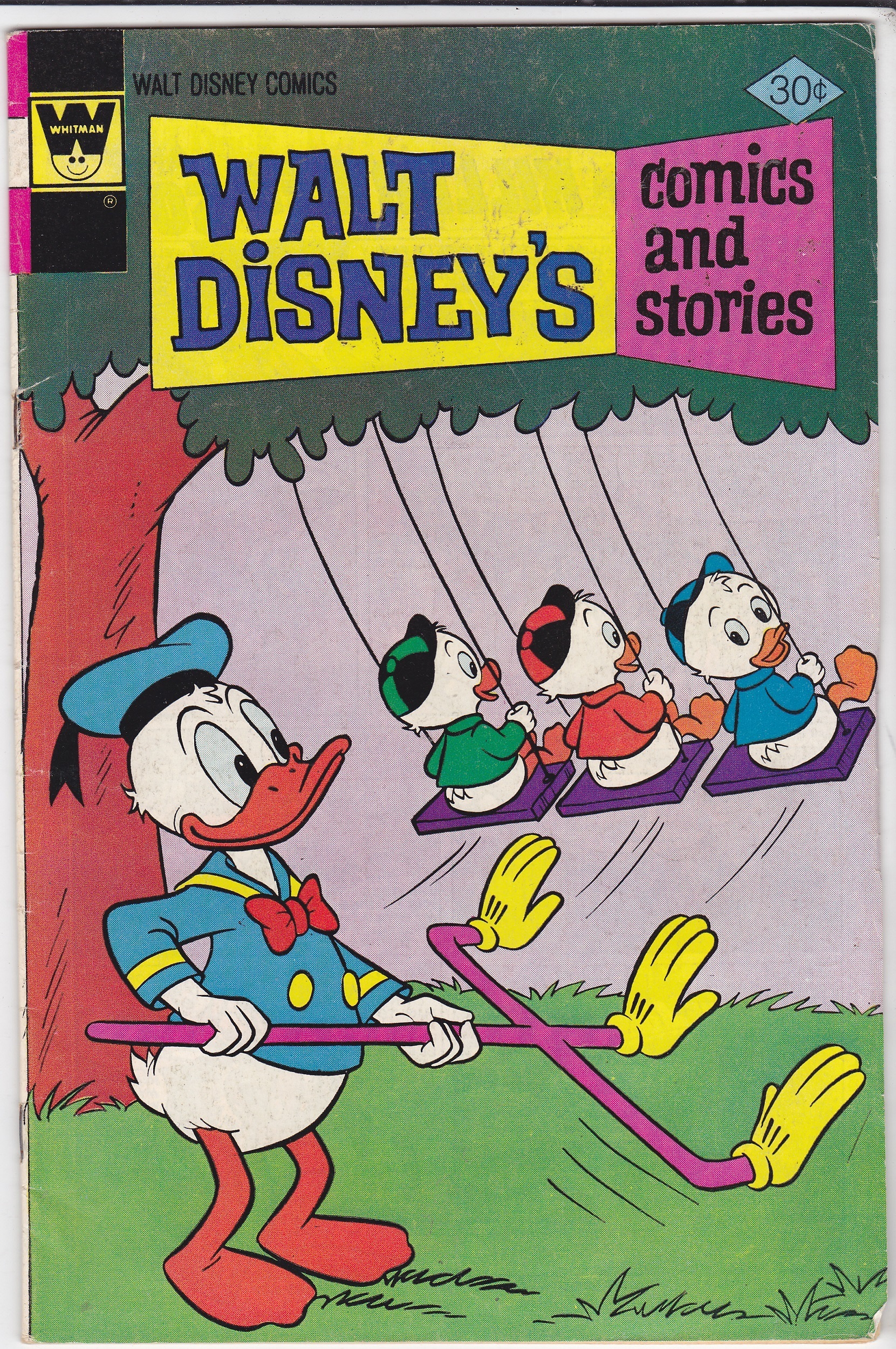 Walt Disney Comics and Stores #440 by Whitman Comics copyright 1977. I have graded the comic book, using the Overstreet Grading Guide, at VERY GOOD with the following defects: Light marks along the spine. The corners are rounded. There is a fold along the right edge. There is some yellowing of the pages.Seller Information