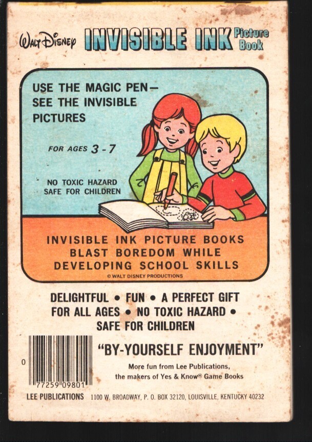 Walt Disney Invisible Ink Picture Book 1983-Fun Time book images include Dona...