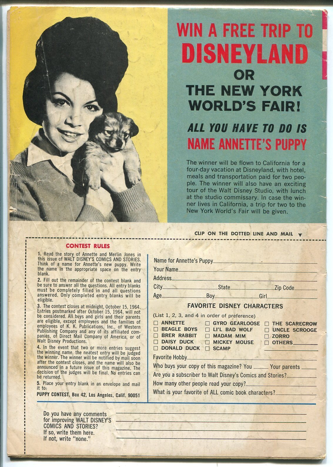 Grade: G/VGWalt Disney's Comics and Stories #289 1964-Gold Key-Annette-Carl Barks-GOOD/VG -Anette front and back cover photos and a story -Carl Barks art -Writing in logo Grade: G/VG SKU: GA-20-022